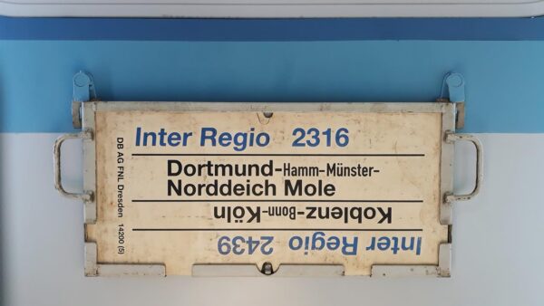 Nächster Zuglaufschild InterRegio 2316 Dortmund-Norddeich Mole