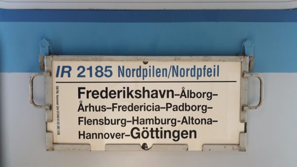 InterRegio 2184 Nordpfeil Hannover-Frederikshavn Startseite Zuglaufschilder Besonderheiten In andere Länder InterRegio 2184 Nordpfeil Hannover-Frederikshavn Ein Schild des Betriebswerkes Hannover-Es ist ein Schild des IR 2184 Vorheriger Zuglaufschild InterRegio 2185 Nordpfeil Frederikshavn-Göttingen Nächster Zuglaufschild FD 713 Allgäu Dortmund-Schruns