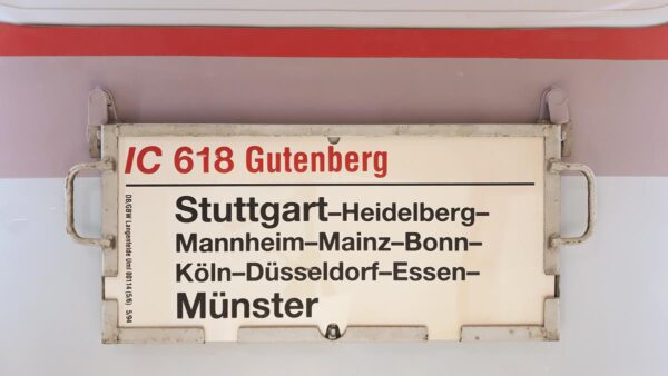Vorheriger Zuglaufschild IC 618 Gutenberg Stuttgart-Münster