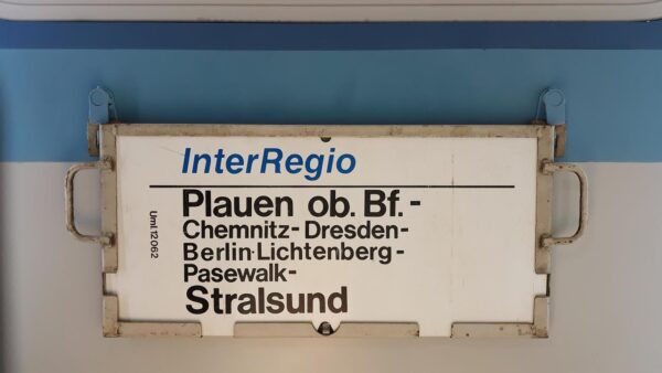 Vorheriger Zuglaufschild InterRegio Plauen ob. Bf-Stralsund