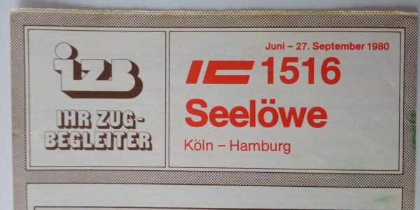 Startseite Zuglaufschilder Besonderheiten Zugbegleiter Faltblatt vorhanden IZB IC 1514 Seemöwe Köln-Hamburg