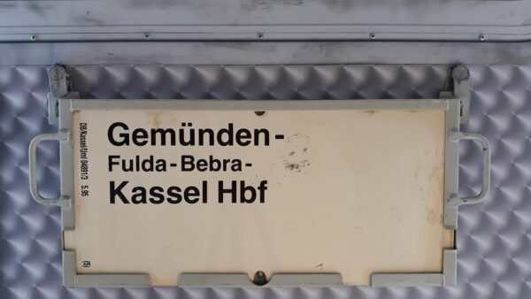Kassel Hbf-Gemünden Startseite Zuglaufschilder Nahverkehr Nahverkehrszüge Kassel Hbf-Gemünden Gestellt vom Betriebswerk Kassel. Vorheriger Zuglaufschild Kornwestheim-Karlsruhe Nächster Zuglaufschild Gemünden-Kassel Hbf