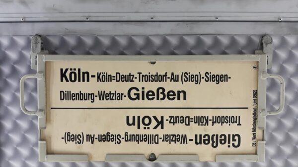 Kleve-Köln Startseite Zuglaufschilder Nahverkehr Nahverkehrszüge Kleve-Köln Vorheriger Zuglaufschild Neuss-Krefeld Nächster Zuglaufschild Köln-Gießen