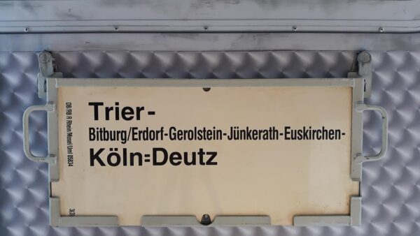 Kleve-Köln=Deutz Startseite Zuglaufschilder Nahverkehr Nahverkehrszüge Kleve-Köln=Deutz Vorheriger Zuglaufschild Köln=Deutz-Kleve Nächster Zuglaufschild Trier-Köln=Deutz