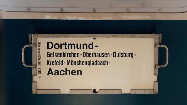 Koblenz-Dortmund Startseite Zuglaufschilder Nahverkehr Nahverkehrszüge Koblenz-Dortmund Das Betriebswerk Dortmund 2 stellte diesen Eilzug E3009. Vorheriger Zuglaufschild IC 712 Diplomat Stuttgart-Hamburg-Altona Nächster Zuglaufschild Dortmund-Aachen