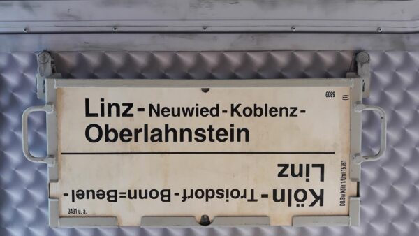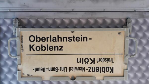 Koblenz-Köln Startseite Zuglaufschilder Nahverkehr Nahverkehrszüge Koblenz-Köln Ein Zuglaufschild für eine ca. 100 km lange Strecke. Vorheriger Zuglaufschild Oberlahnstein-Koblenz Nächster Zuglaufschild Linz-Oberlahnstein