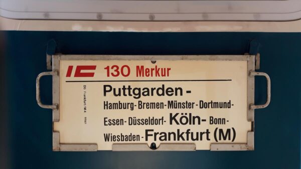 Dieses Zuglaufschild stammt von einem Zug,der 1982 in Dieringahausen nur am Samstag endete,um dort ins Bebriebswerk zu fahren.Ende 1982 wurde das Betriebswerk geschlossen.