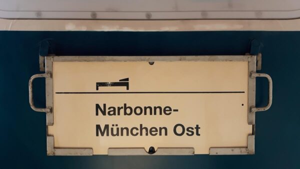 Nächster Zuglaufschild Liegewagen Narbonne-München Ost
