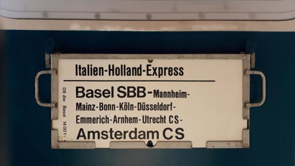 Vorheriger Zuglaufschild D 200 Italien-Holland-Express Basel SBB-Amsterdam CS