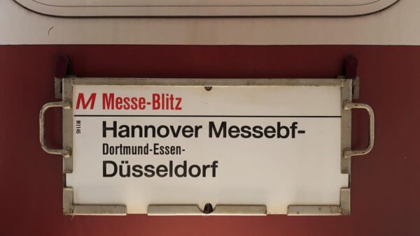 Messe-Agent Hannover/Messebahnhof-Köln Startseite Zuglaufschilder Fernverkehr Messezüge Messe-Agent Hannover/Messebahnhof-Köln Das Betriebswerk Köln 5 stellte zur Hannover Messe diesen Messezug. Vorheriger Zuglaufschild Messe-Agent Köln-Hannover/Messebahnhof Nächster Zuglaufschild Messe-Blitz Hannover/Messebahnhof-Düsseldorf