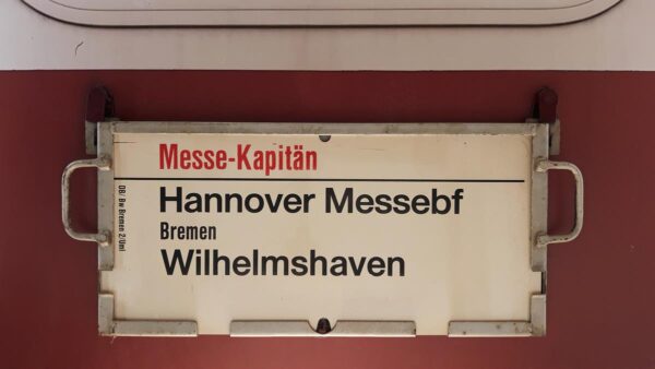 Messe-Blitz Hannover/Messebahnhof-Düsseldorf Startseite Zuglaufschilder Fernverkehr Messezüge Messe-Blitz Hannover/Messebahnhof-Düsseldorf Dieser Zug verband zu Messezeiten die Messestände Hannover und Düsseldorf Vorheriger Zuglaufschild Messe-Agent Hannover/Messebahnhof-Köln Nächster Zuglaufschild Messe-Kapitän Hannover Messebahnhof-Wilhelmshaven