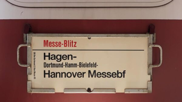 Vorheriger Zuglaufschild Messe-Blitz Hagen-Hannover Messebf