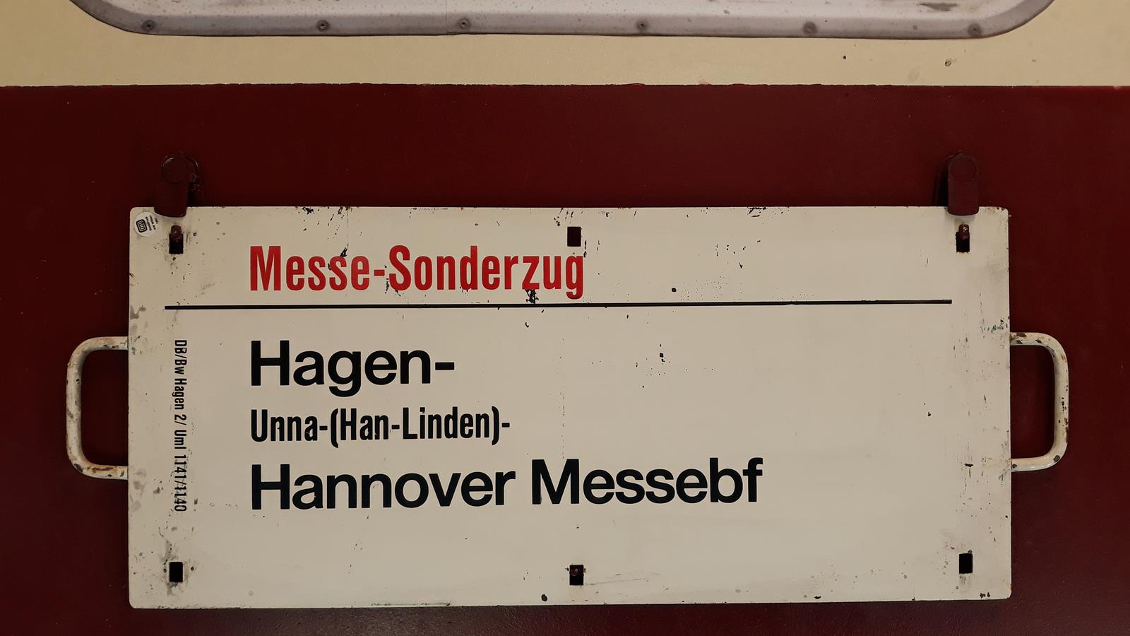 Messe-Sonderzug Hagen-Hannover Messebf Startseite Zuglaufschilder Fernverkehr Messezüge Messe-Sonderzug Hagen-Hannover Messebf Das Betriebswerk Hagen 2 stellte diesen Sonderzug nach Hannover. Vorheriger Zuglaufschild ALPEN-SEE-EXPRESS Frankfurt(M)-Innsbruck Nächster Zuglaufschild Messe-Sonderzug Hannover Messebf-Hagen