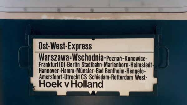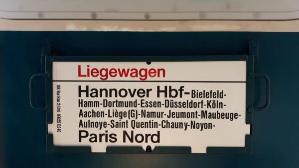 Ein Zug der Deutschen Reichsbahn vom deren Betriebswerk Berlin/Ost gestellt. Dieses Schild wurde aber schon von der Schilderwerkstatt Hannover gedruckt.
