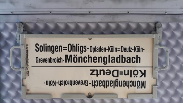 Mönchengladbach-Aachen Hbf Startseite Zuglaufschilder Nahverkehr Nahverkehrszüge Mönchengladbach-Aachen Hbf Gestellt vom Betriebswerk Mönchengladbach. Vorheriger Zuglaufschild Kaldenkirchen-Köln=Deutz Nächster Zuglaufschild Solingen=Ohlings-Mönchengladbach