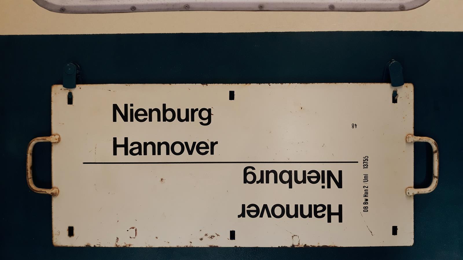 Nienburg-Hannover Startseite Zuglaufschilder Nahverkehr Nahverkehrszüge Nienburg-Hannover Das Betriebswerk Hannover stellte diesen Nahverkehrszug. Vorheriger Zuglaufschild Hannover-Nienburg Nächster Zuglaufschild Minden-Hannover