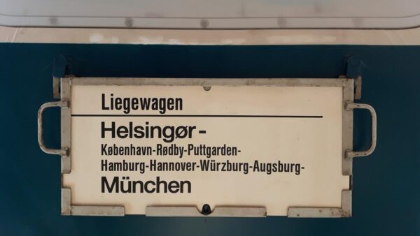 Der Wagen,der dieses Zuglaufschild 1985 führte,wurde erst um 1.05 Uhr in Puttgarden an den aus Kopenhagen kommenden Zug angehängt. Aachen Hbf erreichte dieser Zug um 14.34 Uhr.
