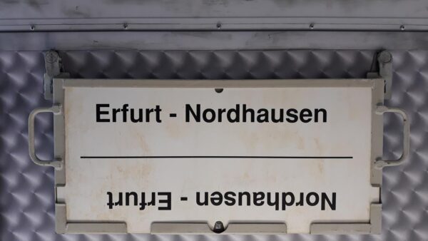 Nordhausen-Erfurt Startseite Zuglaufschilder Nahverkehr Nahverkehrszüge Nordhausen-Erfurt Vorheriger Zuglaufschild Dresden-Leipzig Nächster Zuglaufschild Erfurt-Nordhausen