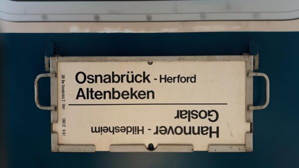 Paderborn-Osnabrück Startseite Zuglaufschilder Nahverkehr Nahverkehrszüge Paderborn-Osnabrück Das Betriebswerk Osnabrück 2 stellte 1987 diesen Zug. Vorheriger Zuglaufschild Osnabrück-Altenbeken Nächster Zuglaufschild Bremen-Emden