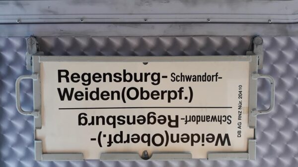 …in Regensburg gab es keinen Mitarbeiter(mehr) der dieses Zuglaufschild umstecken konnte, für die Rückfahrt nach Plattling, daher ist der Hinweis „und zurück….“ aufgedruckt.