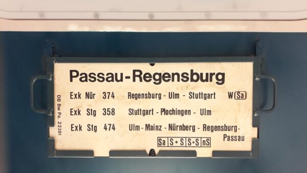 Post-IC Passau-Regensburg/Regensburg-Dortmund-Münster/Münster-Dortmund-Frankurt/M-Würzburg-Passau Startseite Zuglaufschilder Fernverkehr Post InterCity Post-IC Passau-Regensburg/Regensburg-Dortmund-Münster/Münster-Dortmund-Frankurt/M-Würzburg-Passau Gestellt vom Betriebswerk Passau. Vorheriger Zuglaufschild Kosice-Dresden Nächster Zuglaufschild Niddertalbahn Frankfurt(M)-Stockheim