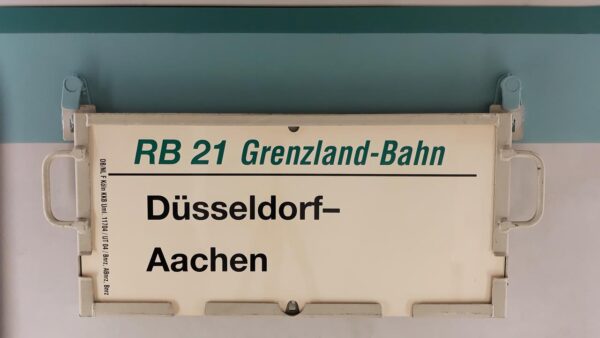 Vorheriger Zuglaufschild RB 21 Grenzland-Bahn Köln=Deutz-Mönchengladbach