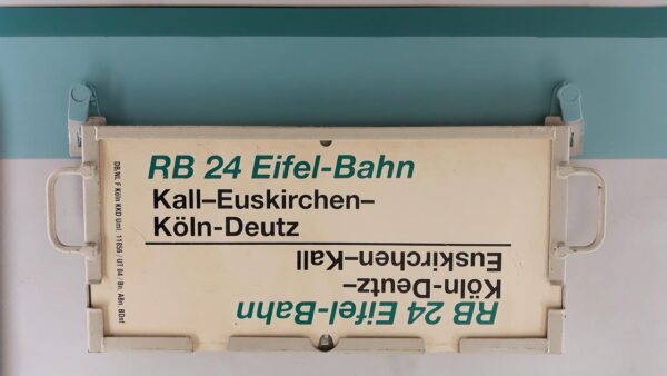 RB 25 Elsterwerde-Berlin Schöneweide Startseite Zuglaufschilder Nahverkehr RegionalBahn RB 25 Elsterwerde-Berlin Schöneweide Vorheriger Zuglaufschild RB 27 Basdorf-Berlin Karow-Klosterheide Nächster Zuglaufschild RB 24 Eifel-Bahn-Kall-Köln-Deutz