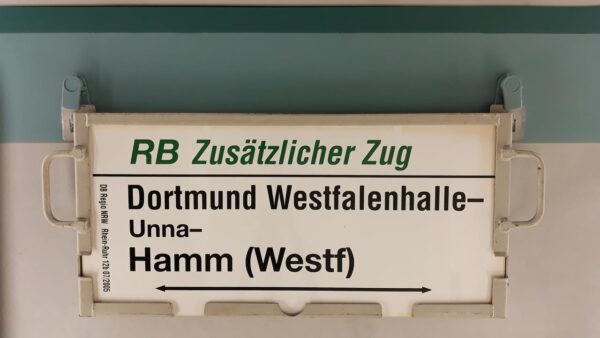 Vorheriger Zuglaufschild RB Zusätzlicher Zug Dortmund Westfalenhalle-Hamm(Westf.)
