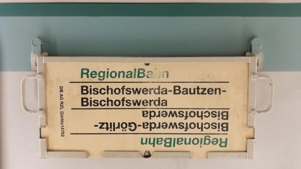 RB Bischofswerda-Görlitz-Bischofswerda Startseite Zuglaufschilder Nahverkehr Nahverkehrszüge RB Bischofswerda-Görlitz-Bischofswerda Vorheriger Zuglaufschild RB Görlitz-Bischofswerda Nächster Zuglaufschild RB Bischofswerda-Bautzen-Bischofswerda
