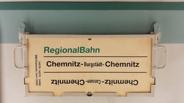 RB Chemnitz Startseite Zuglaufschilder Nahverkehr RegionalBahn RB Chemnitz Vorheriger Zuglaufschild RB Chemnitz-Burgstädt-Chemnitz Nächster Zuglaufschild RB Cemnitz-Roßwein-Chemnitz