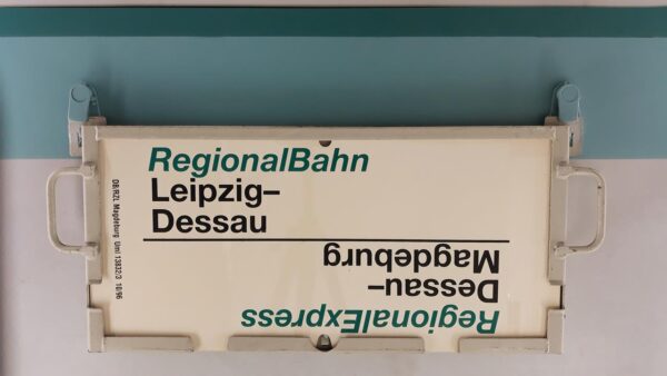 RB Dessau-Leipzig Startseite Zuglaufschilder Nahverkehr RegionalBahn RB Dessau-Leipzig Vorheriger Zuglaufschild RB Wittenberge-Salzwedel Nächster Zuglaufschild RB Leipzig-Dessau