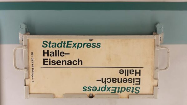 SE Eisenach-Halle Startseite Zuglaufschilder Nahverkehr StadtExpress SE Eisenach-Halle Vorheriger Zuglaufschild RB Linz-Koblenz Hbf Nächster Zuglaufschild SE Halle-Eisenach