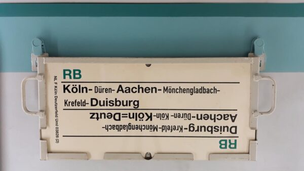 RB Köln-Duisburg (ab Aachen SE) Startseite Zuglaufschilder Nahverkehr RegionalBahn RB Köln-Duisburg (ab Aachen SE) Eine RegionalBahn von Köln über Aachen nach Duisburg. Vorheriger Zuglaufschild RB Köln-Kleve Nächster Zuglaufschild RB Köln-Duisburg