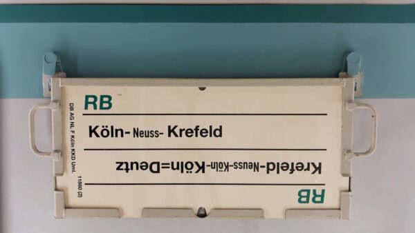 RB Krefeld-Köln=Deutz Startseite Zuglaufschilder Nahverkehr RegionalBahn RB Krefeld-Köln=Deutz Vorheriger Zuglaufschild RE Kaiserlautern Hbf-Saarbrücken Hbf Nächster Zuglaufschild Koblenz-Neuwied