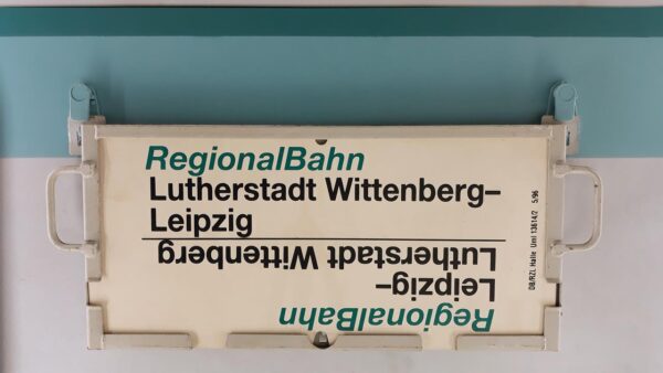 RB Leipzig-Lutherstadt Wittenberg Startseite Zuglaufschilder Nahverkehr RegionalBahn RB Leipzig-Lutherstadt Wittenberg Vorheriger Zuglaufschild RB Lutherstadt Wittenberg-Leipzig Nächster Zuglaufschild RB Dresden-Coswig-Dresden