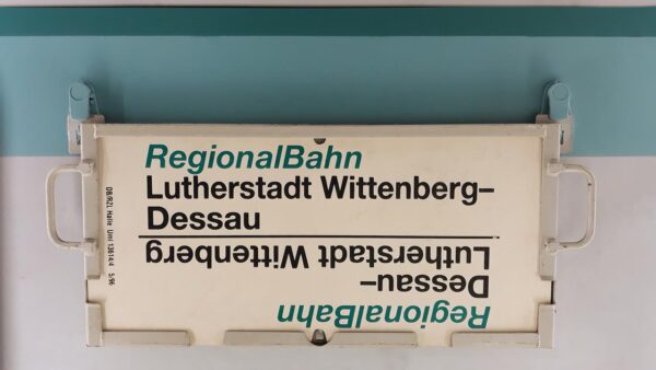 RB Lutherstadt Wittenberg-Leipzig Startseite Zuglaufschilder Nahverkehr RegionalBahn RB Lutherstadt Wittenberg-Leipzig Vorheriger Zuglaufschild RB Lutherstadt Wittenberg-Dessau Nächster Zuglaufschild RB Leipzig-Lutherstadt Wittenberg