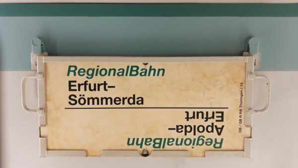 RB Sömmerda-Erfurt Startseite Zuglaufschilder Nahverkehr RegionalBahn RB Sömmerda-Erfurt Vorheriger Zuglaufschild RB Görlitz-Dresden-Görlitz Nächster Zuglaufschild RB Erfurt-Sömmerda