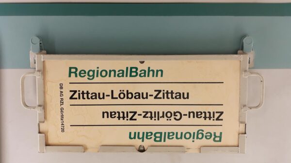 RB Zittau-Görlitz-Zittau Startseite Zuglaufschilder Nahverkehr RegionalBahn RB Zittau-Görlitz-Zittau Vorheriger Zuglaufschild RB Bischofswerda-Bautzen-Bischofswerda Nächster Zuglaufschild RB Zittau-Löbau-Zittau