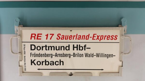 Startseite Zuglaufschilder Nahverkehr Regional Express RE 17 Sauerland-Express Hagen Hbf-Willingen