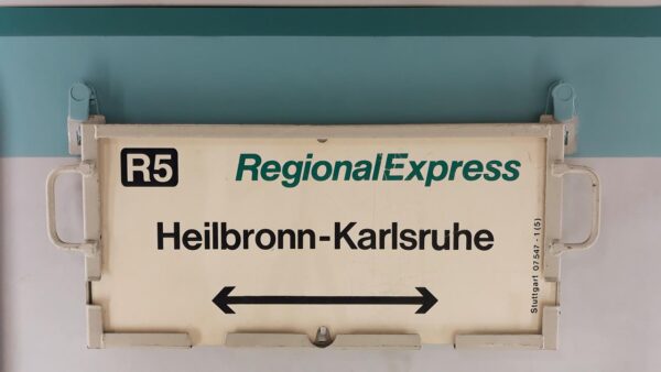 Vorheriger Zuglaufschild RE 5 Heilbronn-Karlsruhe