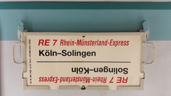 Vorheriger Zuglaufschild RE 7 Rhein-Münsterland-Express Köln-Solingen