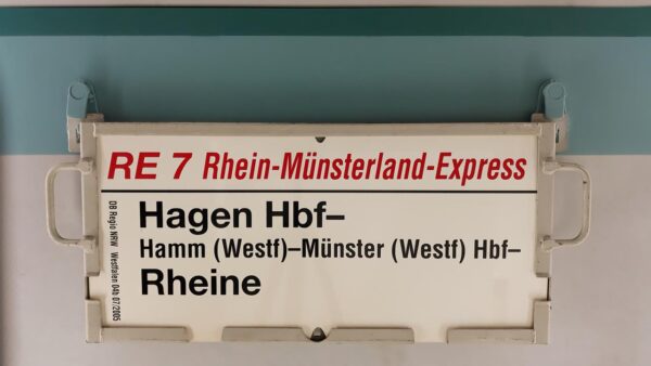 Startseite Zuglaufschilder Nahverkehr Regional Express RE 7 Rhein-Münsterland-Express Köln-Düsseldorf