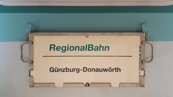 RegionalBahn Donauwörth-Günzburg Startseite Zuglaufschilder Nahverkehr RegionalBahn RegionalBahn Donauwörth-Günzburg 29.07.2022 — Samstags ist der Schalter am Günzburger Bahnhof künftig nicht mehr besetzt. Und zum Jahreswechsel schließt die Bahn dann endgültig. Vorheriger Zuglaufschild R81 RegionalBahn Oberlenningen-Plochingen Nächster Zuglaufschild RegionalBahn Günzburg-Donauwörth