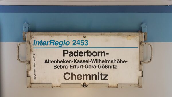 Rheinsberg-Berlin-Lichtenberg Startseite Zuglaufschilder Nahverkehr Nahverkehrszüge Rheinsberg-Berlin-Lichtenberg Vorheriger Zuglaufschild InterRegio 2453 Paderborn-Chemnitz Nächster Zuglaufschild Berlin-Lichtenberg-Rheinsberg
