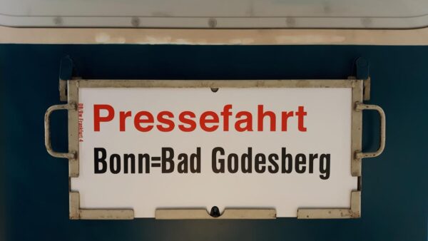 Nächster Zuglaufschild Pressefahrt Bonn-Bad Godesberg