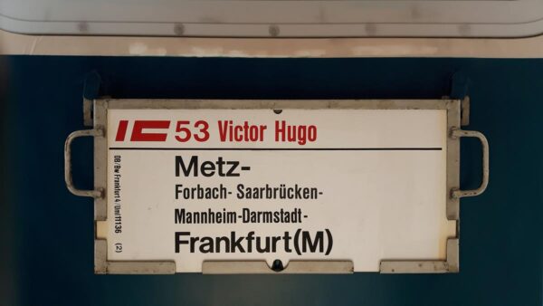 Kurios-Dieses Zuglaufschild wurde aus der Not aus einem neutralen IC-Zuglaufschild gebastelt.Mit Klebefolie wurde das IC-Logo mit S 15 überklebt.