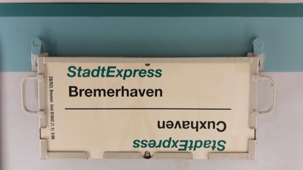SE Cuxhaven Startseite Zuglaufschilder Nahverkehr StadtExpress SE Cuxhaven Vorheriger Zuglaufschild SE Bremerhaven Nächster Zuglaufschild SE Bremerhaven-Lehe