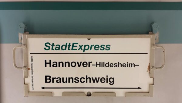 SE Hannover-Hildesheim Startseite Zuglaufschilder Nahverkehr StadtExpress SE Hannover-Hildesheim Vorheriger Zuglaufschild SE Siegen-Köln Nächster Zuglaufschild SE Hannover-Braunschweig