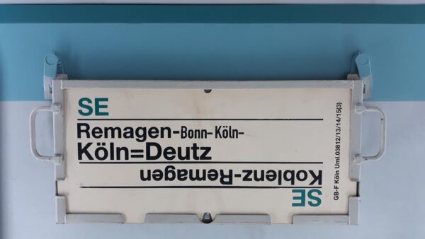 SE Köln-Oberbarmen Startseite Zuglaufschilder Nahverkehr StadtExpress SE Köln-Oberbarmen Vorheriger Zuglaufschild SE Wuppertal-Köln Nächster Zuglaufschild SE Remagen-Köln=Deutz