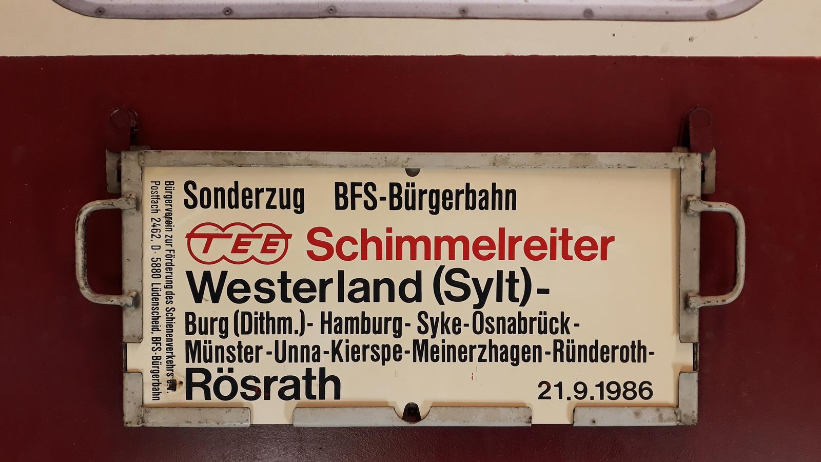 Sonderzug BFS-Bürgerbahn TEE Schimmelreiter Westerland(Sylt)-Rösrath 21.9.1986